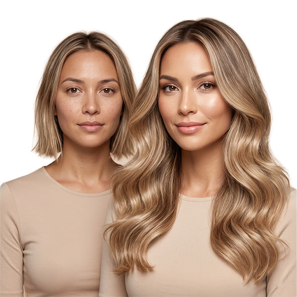 Unsere Extensions Echthaar Bonding bestehen aus 100 % Echthaar und lassen sich perfekt in dein eigenes Haar integrieren. Die feinen Strähnen werden mithilfe von Keratin-Bondings am Eigenhaar befestigt – für einen sicheren Halt über mehrere Monate hinweg. Das Ergebnis: Ein nahtloser Übergang, der selbst bei genauem Hinsehen kaum zu erkennen ist. Du kannst die Extensions wie dein eigenes Haar stylen, waschen und pflegen – für einen Look, der genauso wandelbar ist wie du selbst.